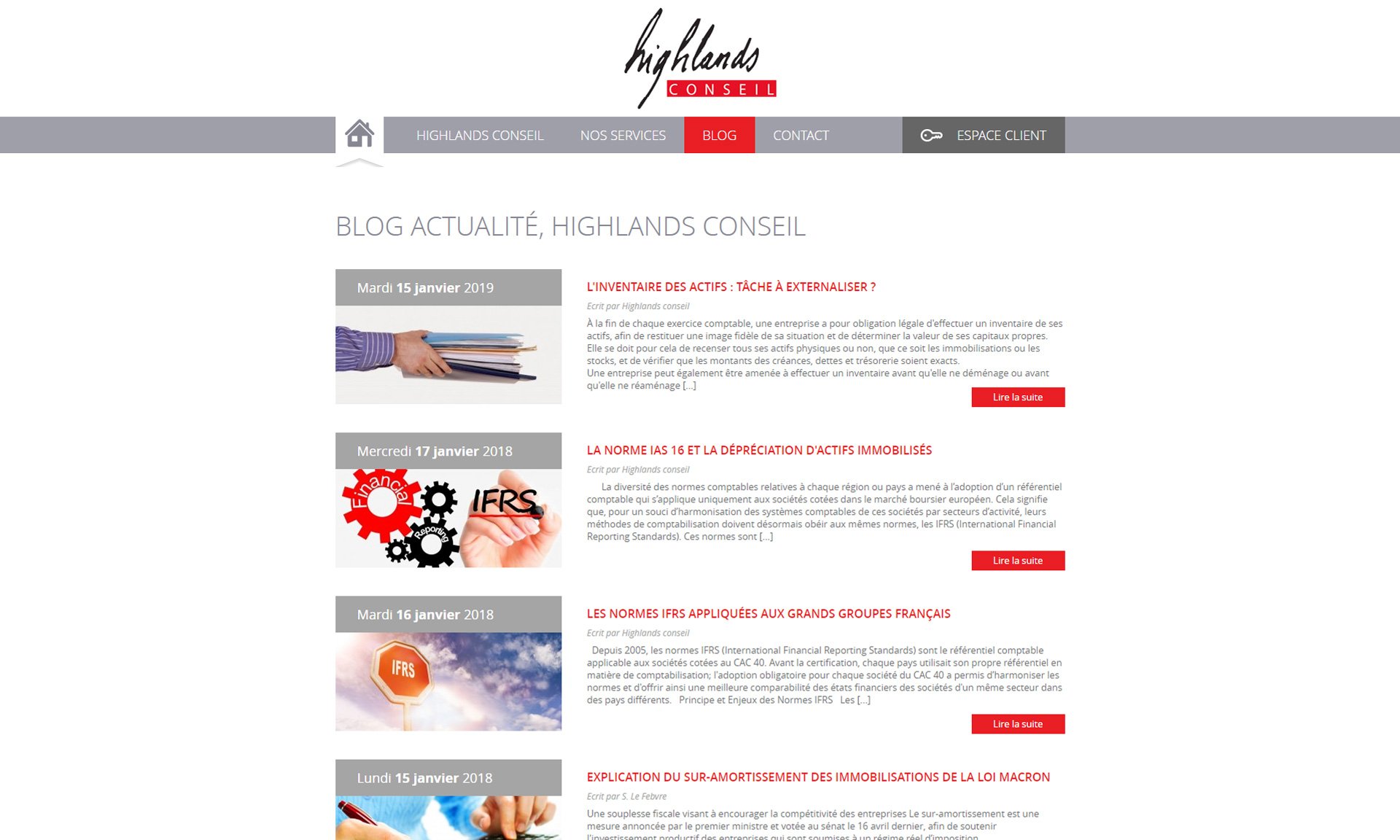 Il doit permettre de présenter Highlands Conseil ainsi que leurs services. C’est également une vitrine de leur expertise grâce à leurs collaborations d’envergure.
